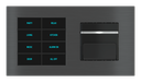Il pulsante 8 tasti Ekinex® serie 20venti serve al comando on/off di utenze, alla dimmerazione di apparecchi di illuminazione, al controllo di azionamenti motorizzati per tapparelle o ad altre funzioni di comando e controllo programmabili. Grazie al sensore di temperatura integrato, il pulsante può svolgere la funzione di regolatore di temperatura per un ambiente o una zona. LED RGB backlight per ogni tasto. L’apparecchio dispone di un modulo di comunicazione bus KNX integrato ed è realizzato per montaggio in scatola da incasso a parete.