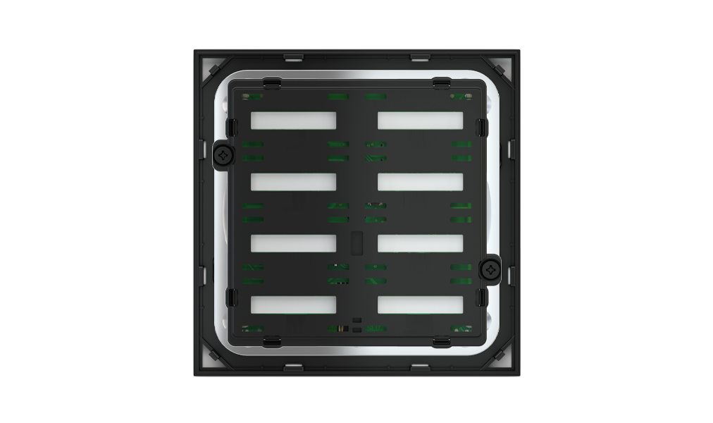 - placca quadrata in versione Deep o Surface con finestra da 60 x 60 mm