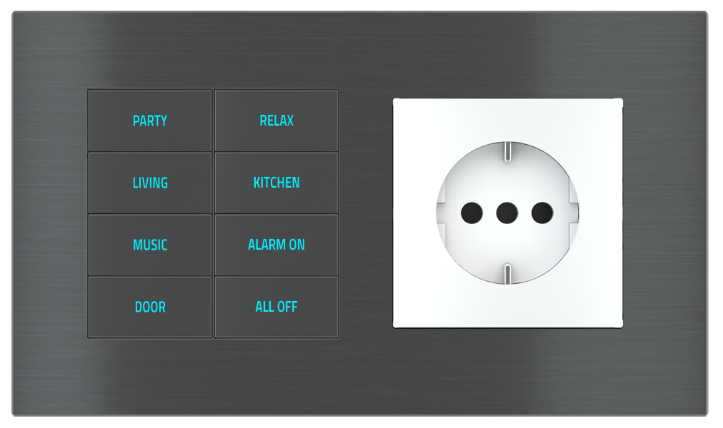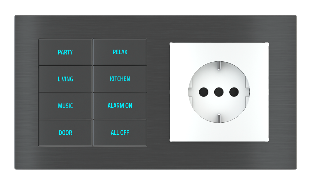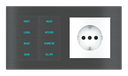 EKINEX Pulsante 8 tasti con testi/simboli retroilluminati, sensore di prossimità con componente di serie civile per placca a 2 posti (modulo 60x55 mm)