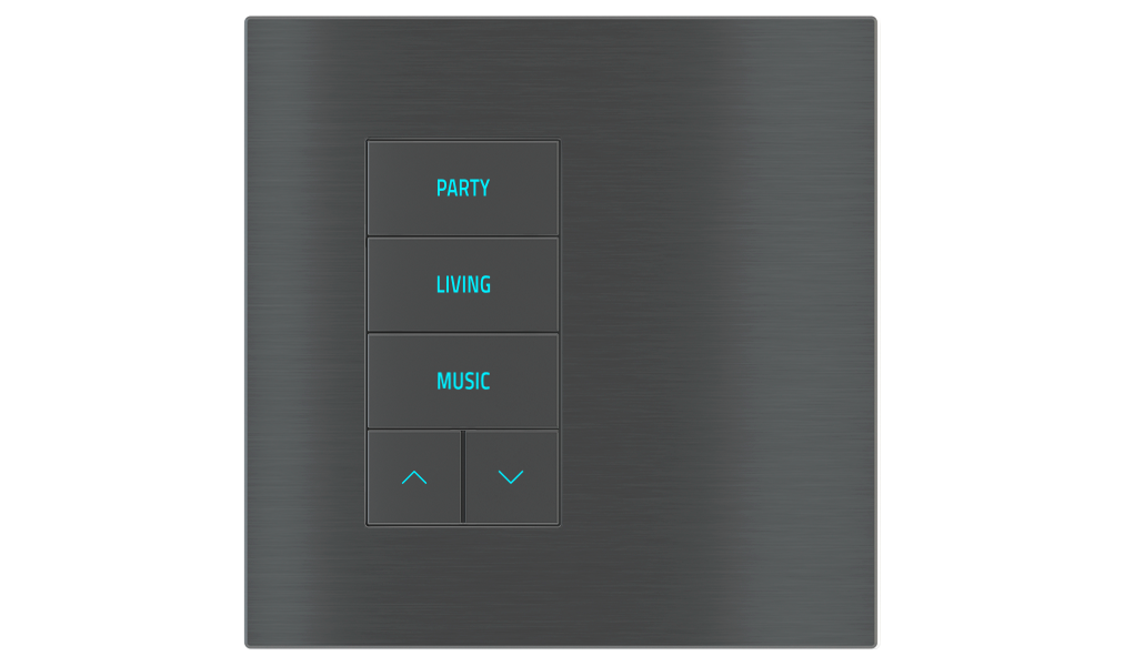 Il pulsante 5 tasti Ekinex® serie 20venti serve al comando on/off di utenze, alla dimmerazione di apparecchi di illuminazione, al controllo di azionamenti motorizzati per tapparelle o ad altre funzioni di comando e controllo programmabili. Grazie al sensore di temperatura integrato, il pulsante può svolgere la funzione di regolatore di temperatura per un ambiente o una zona. LED RGB backlight per ogni tasto. L’apparecchio dispone di un modulo di comunicazione bus KNX integrato ed è realizzato per montaggio in scatola da incasso a parete.