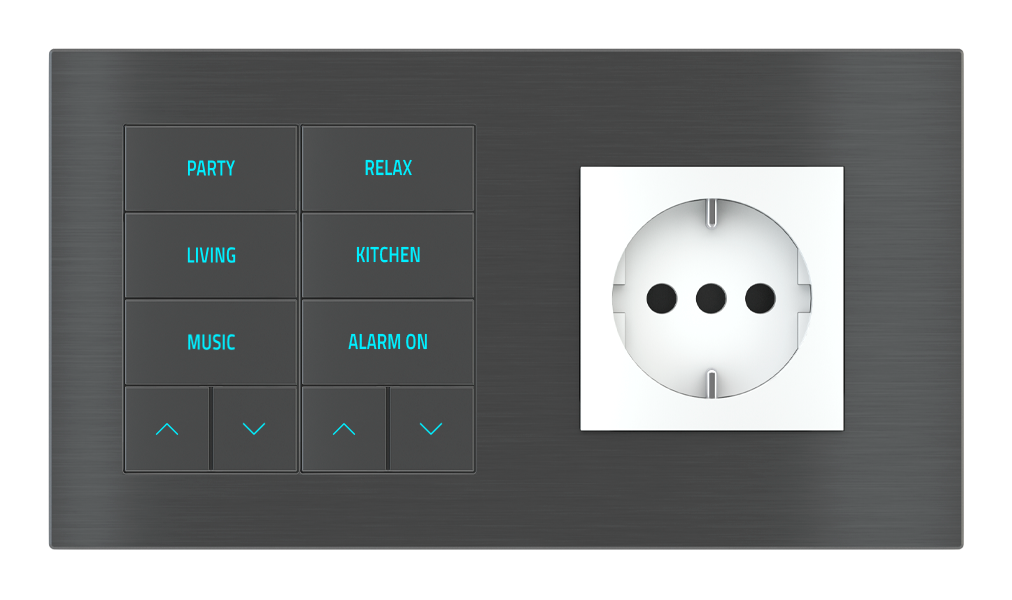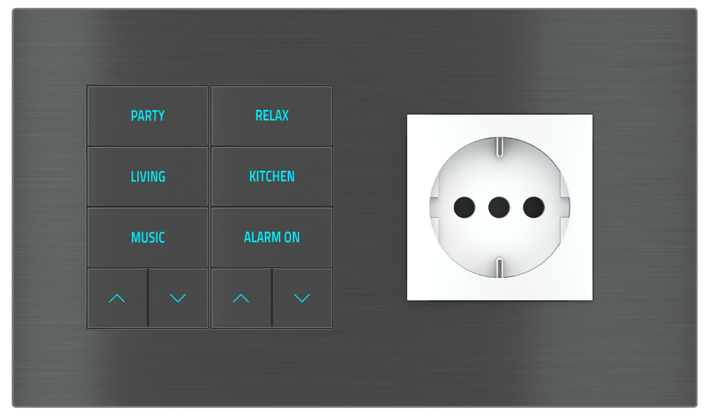 EKINEX Pulsante 10 tasti con testi/simboli retroilluminati, sensore di prossimità con componente di serie civile per placca a 2 posti (modulo 60x45 mm)