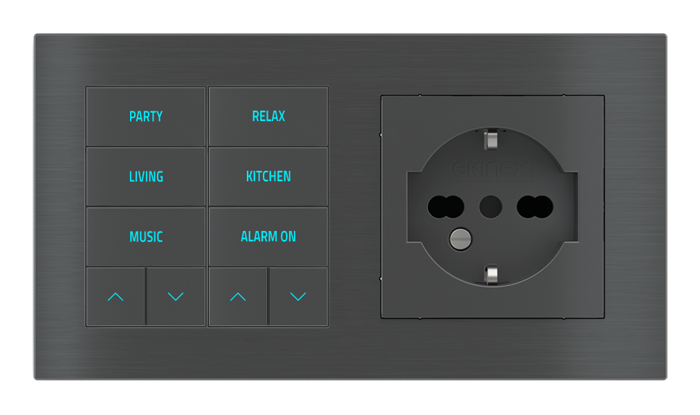EKINEX Pulsante 10 tasti con testi/simboli retroilluminati, sensore di prossimità e presa elettrica per placca a 2 posti (modulo 60x55 mm) - IT