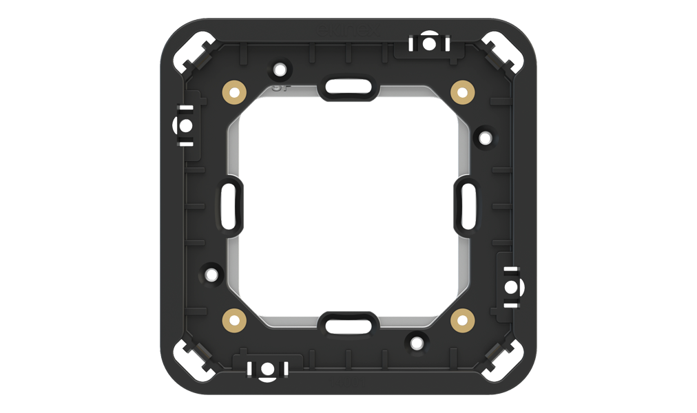 Telaio adattatore in materiale plastico a finestra quadrata singola, per il montaggio a parete in muratura dei dispositivi Ekinex® della serie 71, 20venti o prese di corrente, da impiegare nella versione Surface.