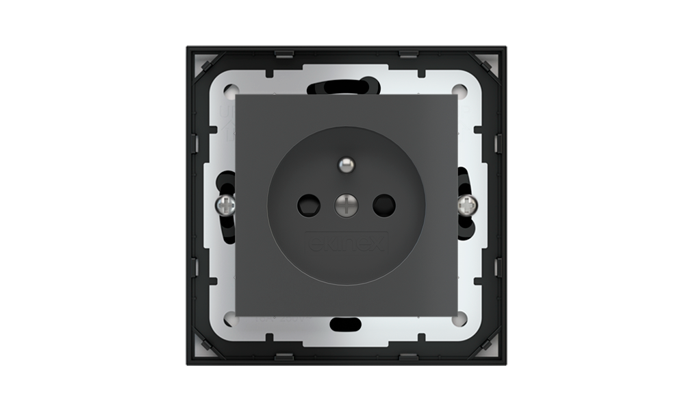 La presa a standard francese/belga modello Ekinex EK-PWS-FR è un dispositivo per installazione a parete di tipo E per l’alimentazione di apparecchiature di uso domestico fino a 16 A 250 V ~.