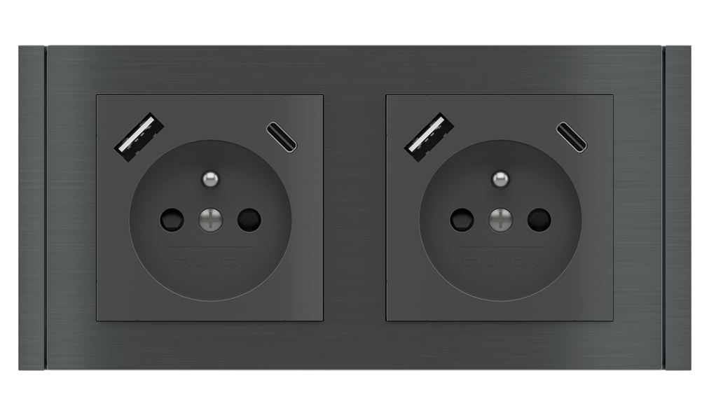 La presa a standard francese/belga modello Ekinex EK-PWS-USB-FR è un dispositivo per installazione a parete di tipo E per l’alimentazione di apparecchiature di uso domestico fino a 16 A 250 V ~. Il modello è dotato di un’unità di alimentazione USB, sia tipo-A che tipo-C, per la ricarica di telefoni cellulari e in generale di tutti gli dispositivi elettronici ricaricabili mediante prese USB del medesimo tipo. É permessa la ricarica di due dispositivi contemporaneamente.