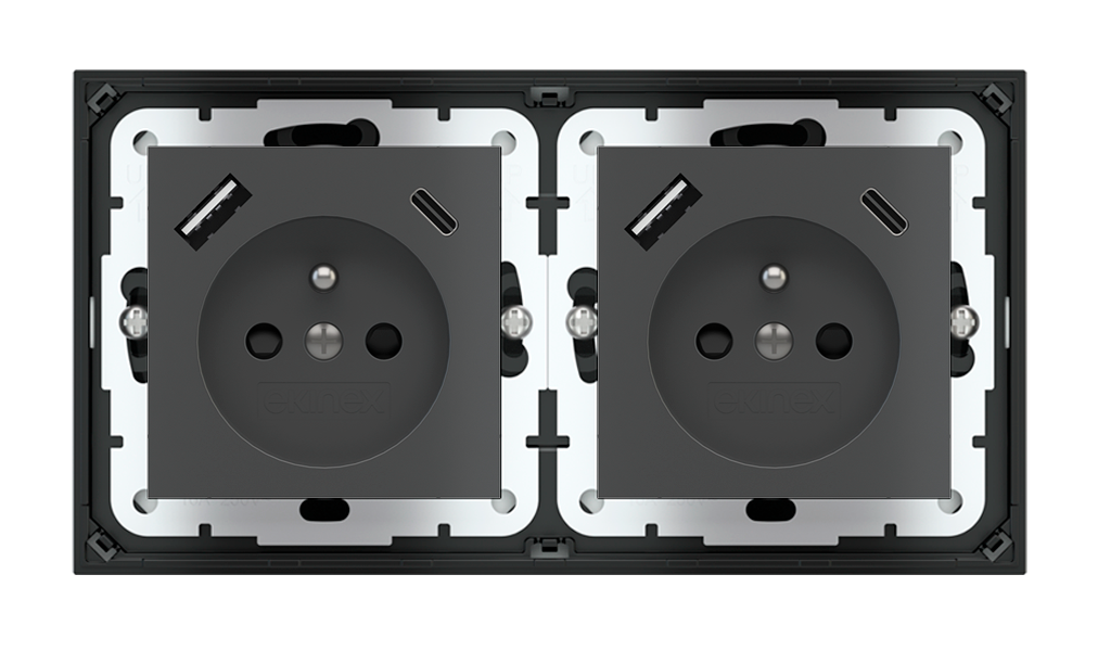 EKINEX Presa elettrica per placca a 2 posti (moduli 55x55 mm) - FR USB