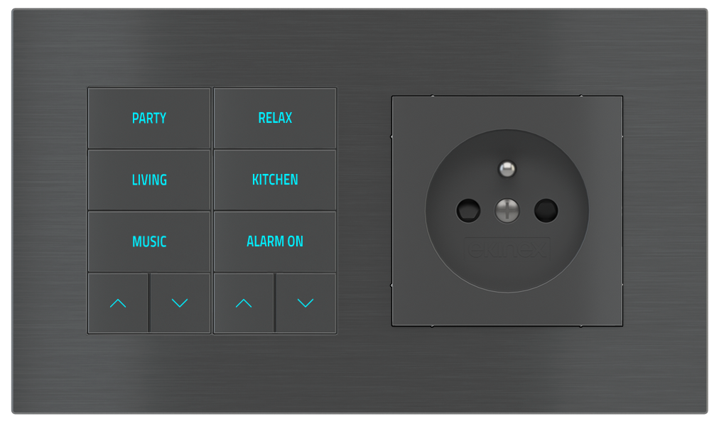 EKINEX Pulsante 10 tasti con testi/simboli retroilluminati, sensore di prossimità e presa elettrica per placca a 2 posti (modulo 60x55 mm) - FR