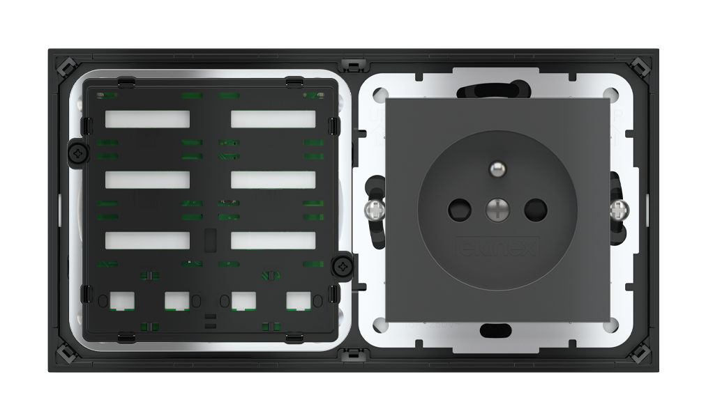 La presa a standard francese/belga modello Ekinex EK-PWS-FR è un dispositivo per installazione a parete di tipo E per l’alimentazione di apparecchiature di uso domestico fino a 16 A 250 V ~.