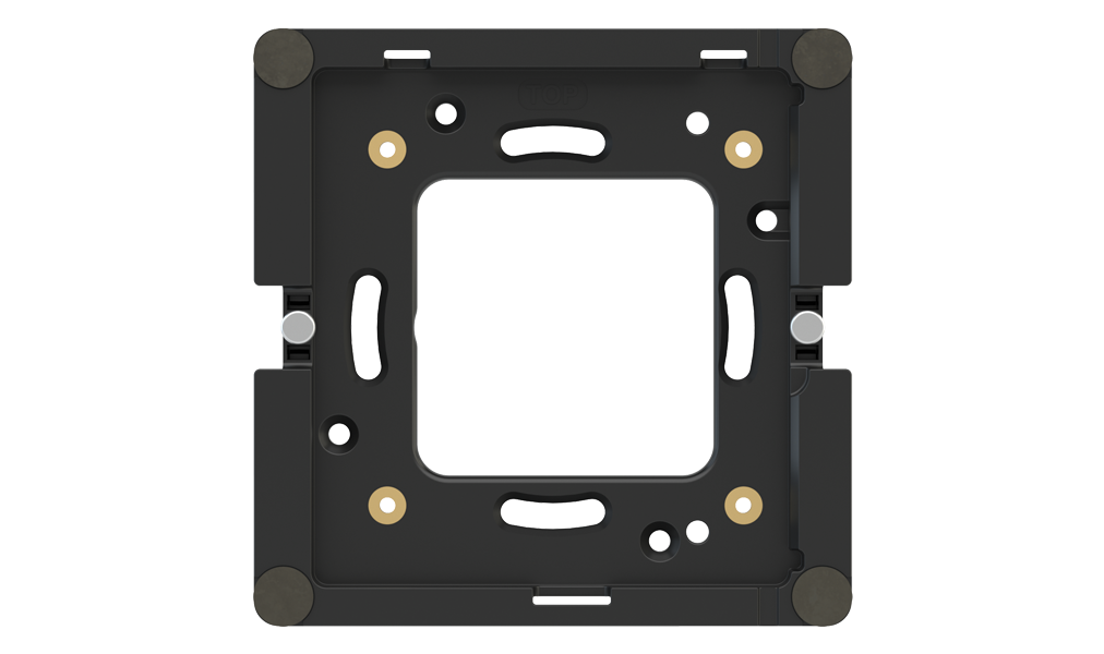 Telaio adattatore in materiale plastico a finestra quadrata singola, per il montaggio su pareti di spessore max. 35 mm (cartongesso, boiserie, marmo, ecc.) dei dispositivi Ekinex® della serie Signum, da impiegare nella versione Surface.