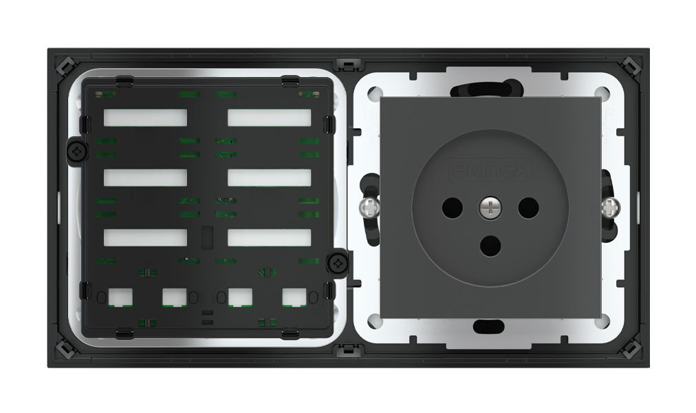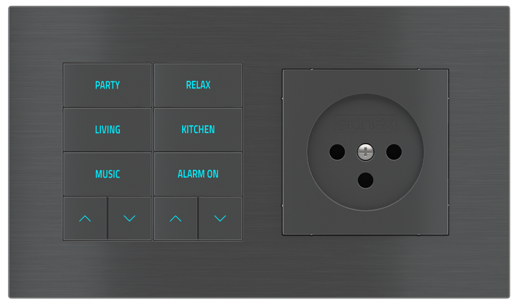 EKINEX Pulsante 10 tasti con testi/simboli retroilluminati, sensore di prossimità e presa elettrica per placca a 2 posti (modulo 60x55 mm) - IL