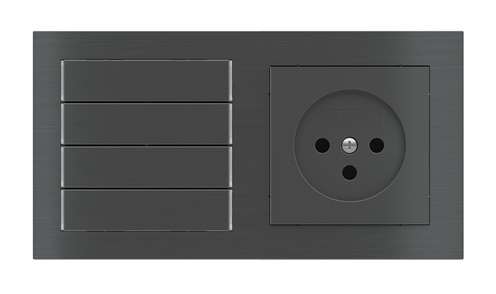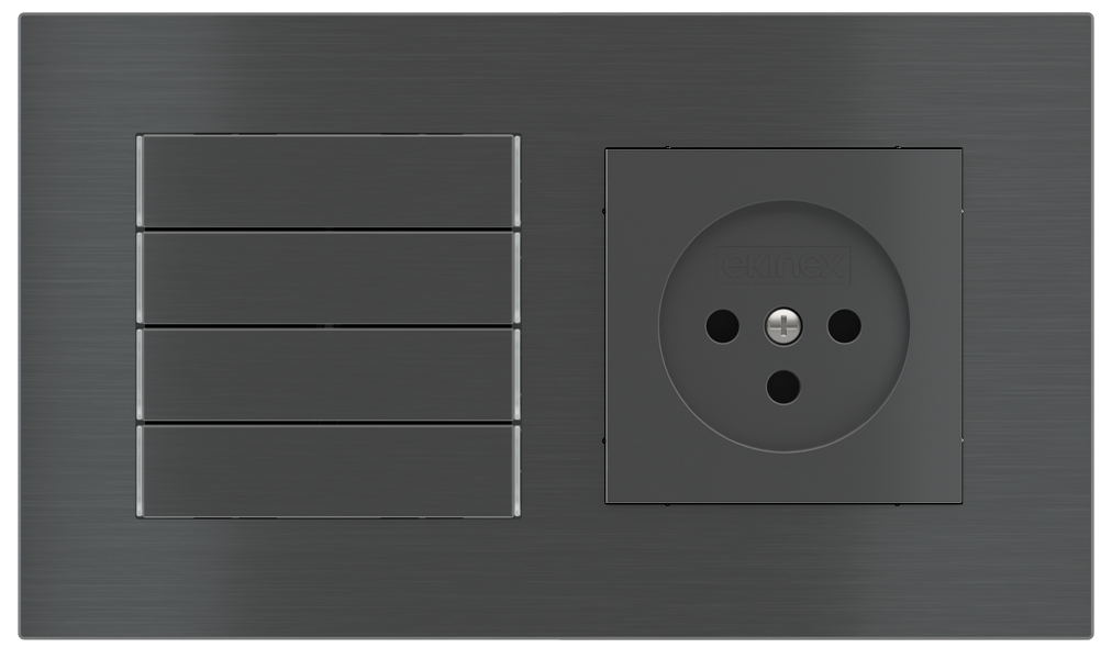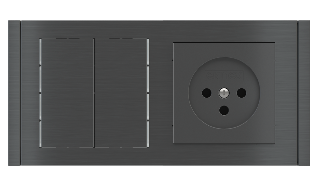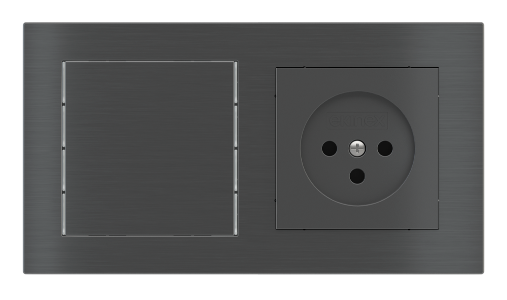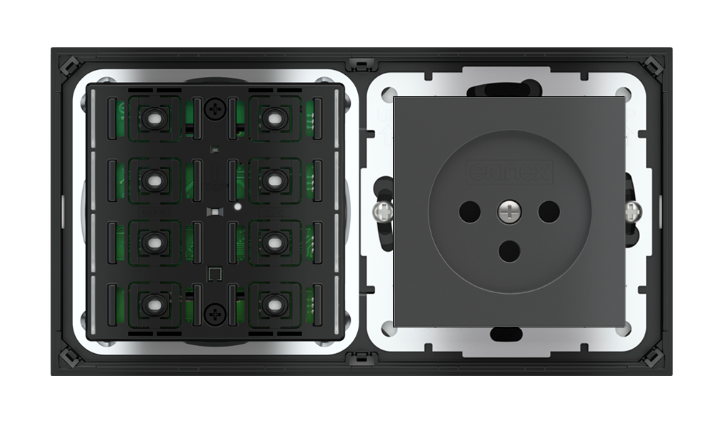EKINEX Pulsante Basic (NO LED) e presa elettrica per placca a 2 posti (modulo 60x55 mm) - IL