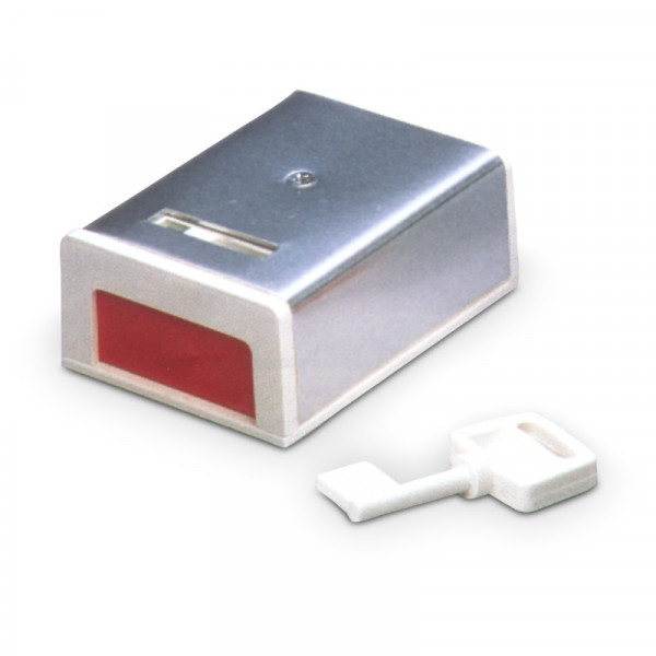 ELMO C/484I Pulsante antirapina con chiave di reset, LED di indicazione stato di allarme. Autoprotetto contro l’apertura. Biadesivo di fissaggio