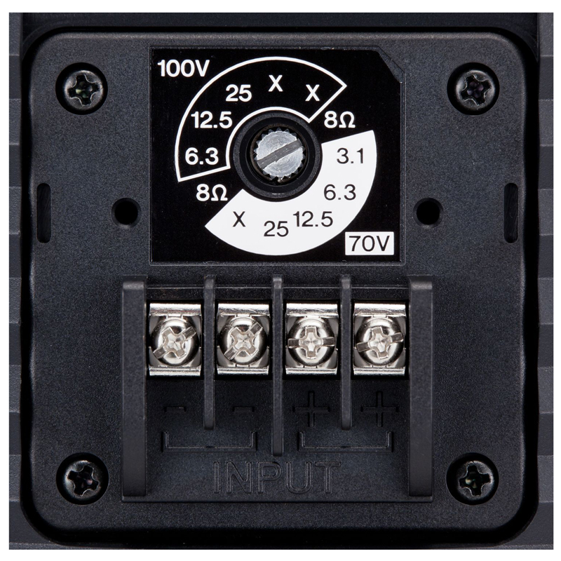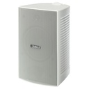 Diffusori a due vie con elegante cabinet plastico e griglia metallica, grado protezione IP X3, staffa a C per montaggio a parete/soffitto in dotazione. Lavorano in impedenza a 8 ohm (25 W) ed in tensione 100 V (6, 12, 25 W), risposta in frequenza 80 Hz 20 kHz, sensibilità 90 dB 1 W/1 m, max SPL 107 dB, connettore a morsetto. Dimensioni (LxAxP): 190x308x219 mm. Peso: 2,8 kg. Colore: bianco.