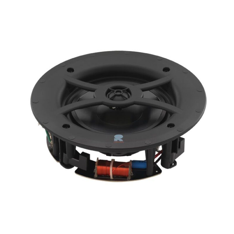 Diffusore da incasso certificato IP65 per installazioni da esterno (Marine-grade), woofer da 6.5" in alluminio, tweeter da 1" in alluminio a guida d'onda, profondità d'incasso 69 mm, include la griglia magnetica rotonda Extreme-Climate Zero-Bezel, diametro della griglia 231 mm, diametro foro per incasso 203 mm, impedenza 8 ohm, potenza raccomandata 10-100 W, sensibilità 85 dB SPL a 2.83V/1m, risposta in frequenza: 50 Hz 15 kHz (-3 dB). Peso 1.41 kg.