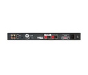 Amplificatore con display frontale e DSP, impedenza in ingresso 15000 ohm, potenza in uscita 500 W RMS @4 ohm, 250 W RMS @8 ohm. Sensibilità in ingresso 100 mV for 500 W output 4 ohm, Distorsione armonica (THD) minore del 0,2%, risposta in frequenza 1.1 dB at 300 Hz (Flat EQ, LFE Crossover Setting) 1.5 dB at 20 Hz, trigger in/out, ir in, RCA in/out, 2 uscite potenza parallelate. Dimensioni: 429x45x226mm (LxAxP) Peso: 3,8 kg.