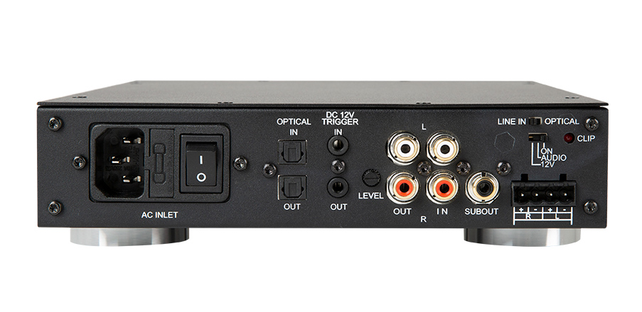 Specifiche: Potenza: 50 W @8 ohm. Potenza in modalità bridge: 200 W. Input: 2x ingressi audio linea stereo analogici, 2x ingressi audio linea analogici globali, 1x ingresso S/PDIF, 1x ingresso trigger 12 V. Output: 2x uscite stereo amplificate, 2x Uscite analogiche loop, 2x uscite analogiche per sub, Uscita digitale S/PDIF loop, trigger output. SNR: >85 dB. Risposta di frequenza: da 20 Hz a 20 kHz +-2 dB. Dimensioni: 437x103x310 mm. Peso: 9 kg.