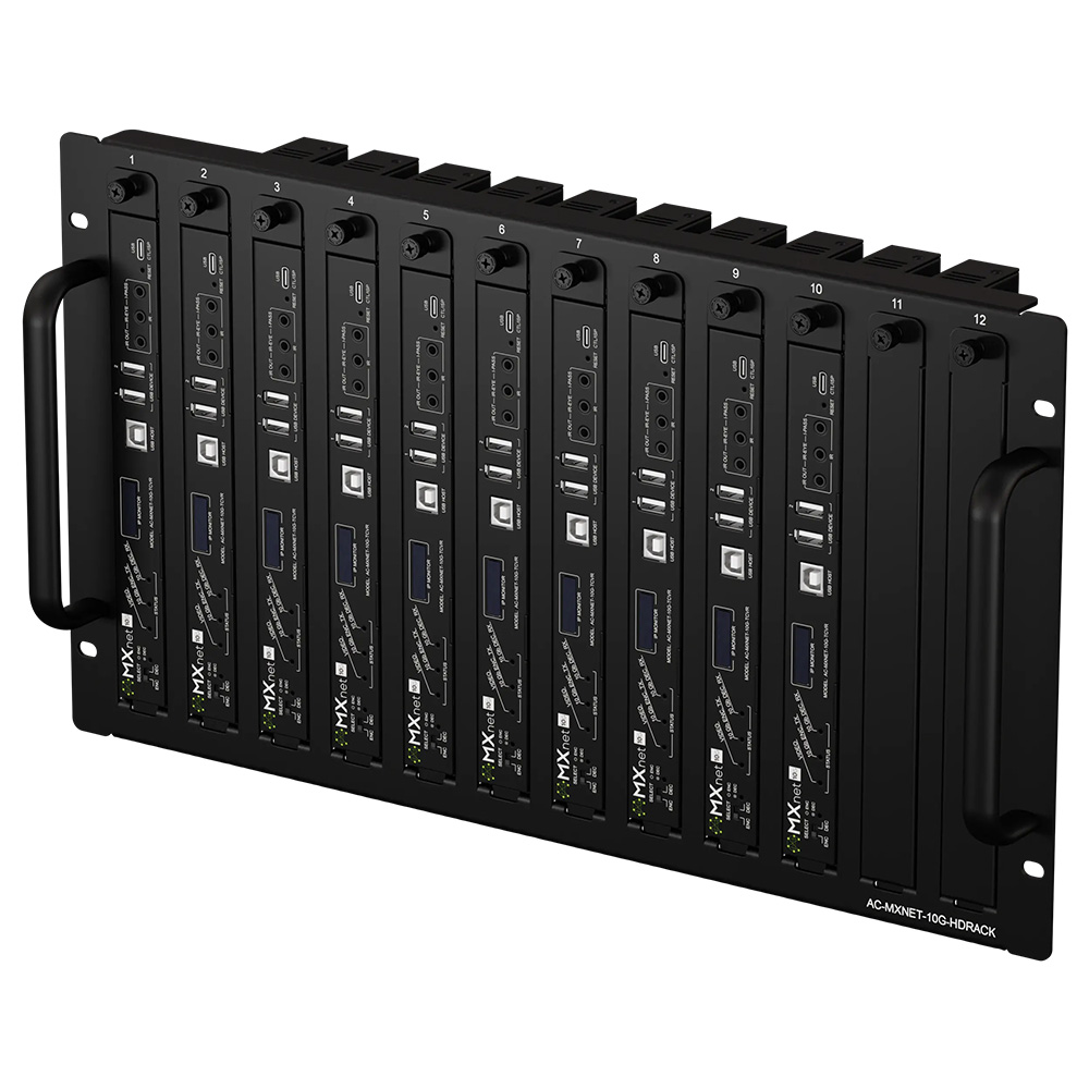 La piastra rack AVPro Edge AC-MXNET-10G-HDRACK rappresenta una soluzione affidabile e versatile per la gestione dei tuoi dispositivi AV over IP, assicurando un'installazione pulita e professionale.