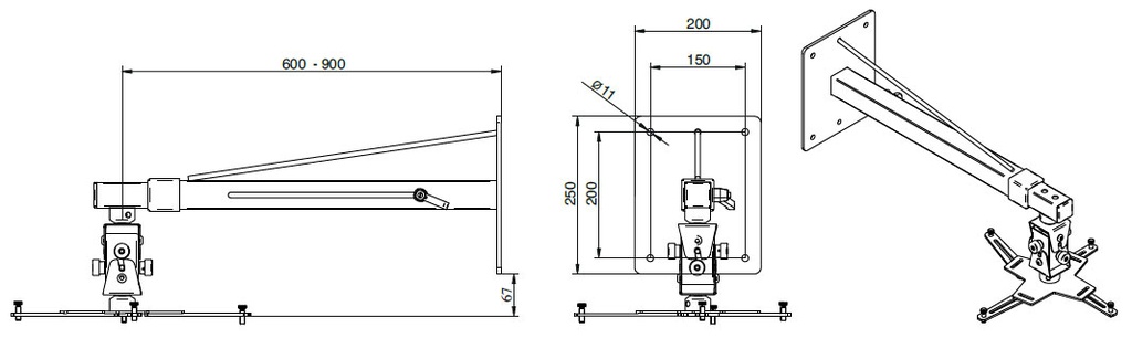 Arakno wall è un supporto da parete regoalbile per videoproiettori serie Professional, da abbinare come accessorio all'arakno o all'arakno mini. Estremamente solido è certificato per sostenere carichi fino a 45 kg, allungabile da un minimo di 60 centimetri ad un massimo di 90 centimetri; colore nero.