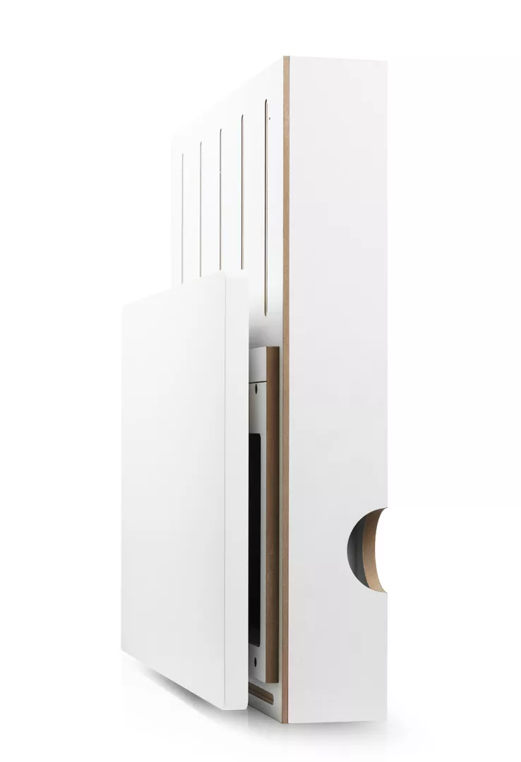 Grazie a un design innovativo, il subwoofer attivo bass reflex FLEX200 può essere integrato in qualsiasi ambiente domestico: il suo che look ricorda un radiatore ben si adatta a qualsiasi home design, e la versatile verniciatura bianca di serie può essere cambiata per un migliore matching cromatico con l’ambiente circostante.